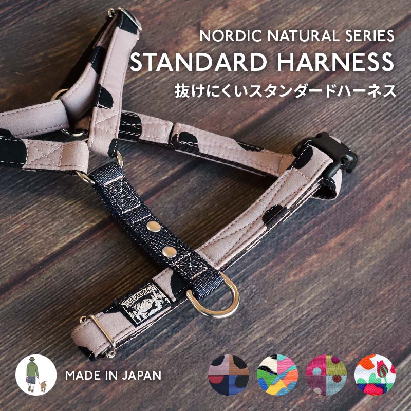 犬 ハーネス 胴輪 抜けない 抜けにくい 脱げない 脱げにくい 迷子防止 小型犬 中型犬 大型犬 おしゃれ かわいい 名入れ可 迷子札 水玉 ドット ポップ ナチュラル 抜けにくい すず首輪製作工房 すず工房 SUZUKOUBOU【スタンダードハーネス・北欧ナチュラル】